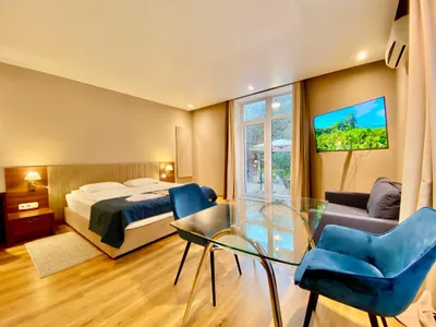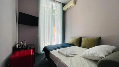 Хорошее расположение отеля, есть своя парковка, вокруг лес, напротив отеля Ливадийский парк, недалеко есть магазины. В номере было чисто, на общей кухне тоже. Цена в несезон супер. Рекомендую.